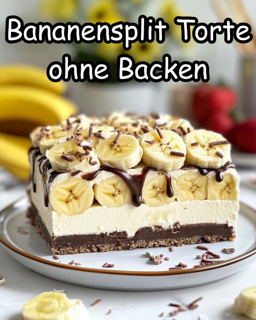 Du suchst nach einem Dessert, das schnell zubereitet ist und garantiert jeden begeistert? Dann ist diese Bananensplit-Torte ohne Backen genau das Richtige für dich! Die Kombination aus knusprigem Keksboden, einer herrlich cremigen Frischkäse-Schlagsahne-Schicht, fruchtigen Bananen und einer unwiderstehlichen Schokoladensauce sorgt für ein Geschmackserlebnis, das einfach himmlisch ist.