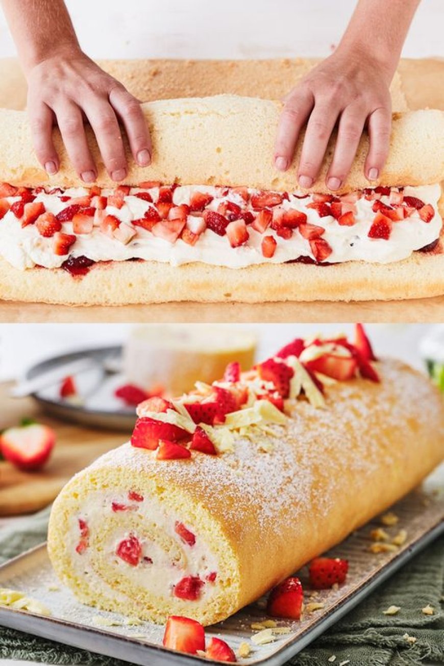 Biskuitrolle mit Erdbeer-Sahne Füllung