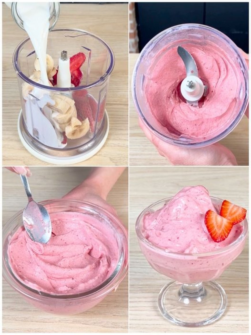 Diese Creme ist zudem eine gesunde Alternative zu herkömmlichen Desserts, da sie keinen zusätzlichen Zucker benötigt. Die natürliche Süße der Bananen harmoniert perfekt mit dem Aroma der Erdbeeren. Außerdem liefert dieses Dessert Vitamine, Ballaststoffe und Energie – ein Genuss ohne Reue!