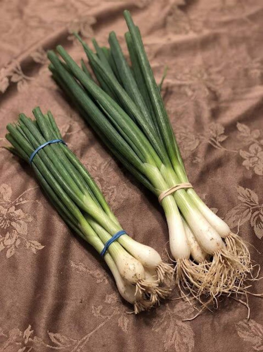 Frühlingszwiebeln sind etwas reifer. Sie ähneln Lauchzwiebeln, haben aber eine kleine, runde Knolle am unteren Ende. Diese Knolle verleiht ihnen einen süßeren und etwas kräftigeren Geschmack, der dem von herkömmlichen Speisezwiebeln ähnelt, aber dennoch milder ist. Frühlingszwiebeln sind sehr vielseitig. Die Knolle kann in Scheiben geschnitten und angebraten, gegrillt oder geröstet werden, während das Grün gehackt und als Garnitur verwendet