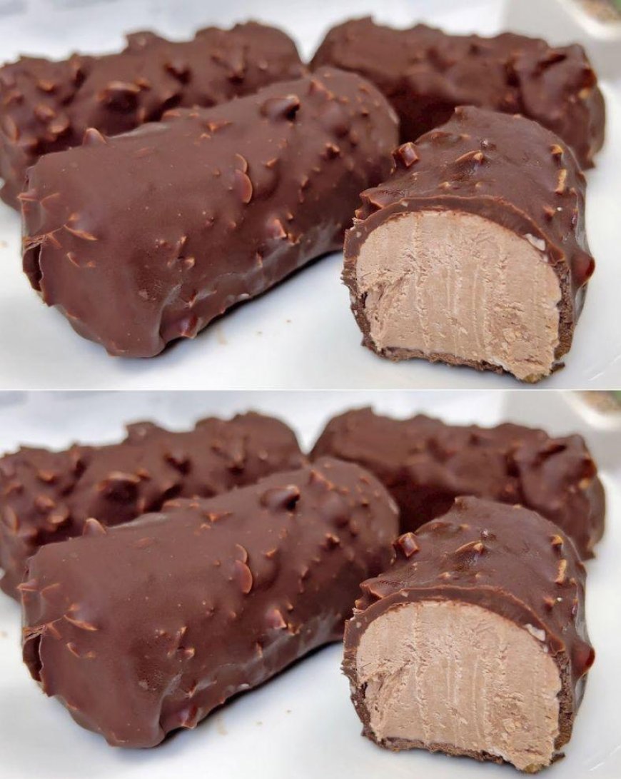 Diese kleinen Schokoladencreme-Riegel sind ein perfektes Zusammenspiel aus cremiger, luftiger Füllung und einer festen, knackigen Schokoladenhülle. Mit ihrer glatten, samtigen Textur im Inneren erinnern sie an eine Mischung aus Schokoladenmousse und Eispralinen, während die äußere Hülle einen angenehmen Kontrast durch ihren Biss erzeugt.
