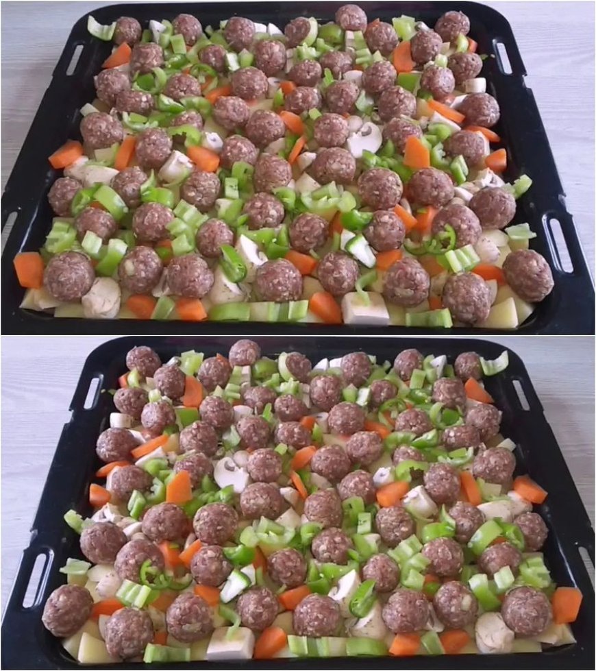 Schnelles Ofengericht: Gemüse mit Hackbällchen in nur 15 Minuten