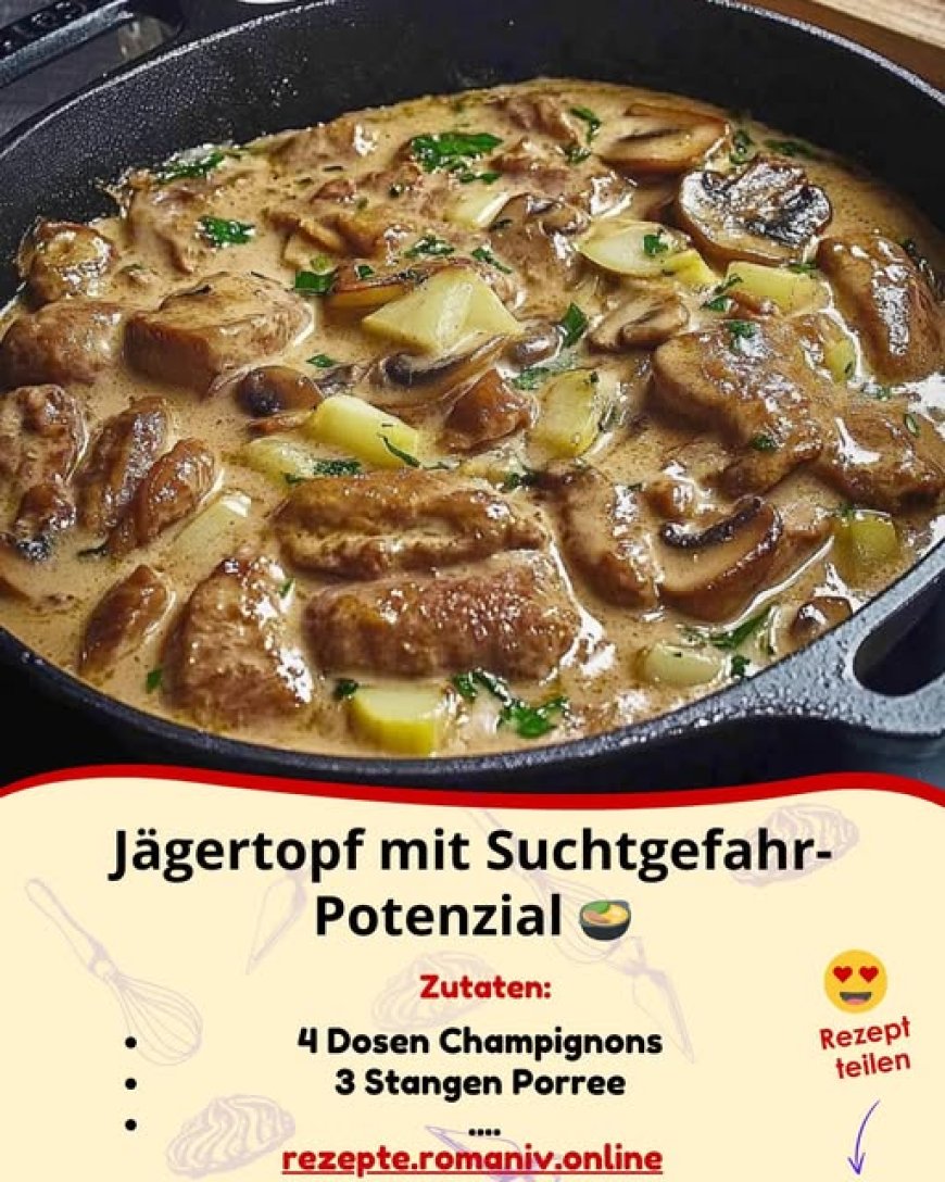 Der Jägertopf ist ein echtes Wohlfühlgericht, das durch seine einfache Zubereitung und den unvergleichlichen Geschmack begeistert. Zartes Schnitzelfleisch, cremige Soße, würziger Käse und eine perfekte Kombination aus Porree und Champignons machen dieses Gericht zu einem Highlight für jede Gelegenheit. Das Fleisch wird mit einer Würzmischung mariniert und in einem Bräter geschichtet. Darauf folgen Schmelzkäse, frischer Porree und Champignons. Gedünstete Zwiebeln und Rinderschinken (als Alternative zu Räucherspeck) sorgen für zusätzliche Aromen. Die Soße aus Jägersoße und Sahne wird darüber verteilt, bevor der Topf für 24 Stunden in den Kühlschrank kommt, damit die Aromen gut durchziehen können. Am nächsten Tag wird der Bräter bei 190°C für etwa zwei Stunden im Ofen gegart – ganz ohne Stress. Dieses Gericht ist ideal für große Runden und lässt sich perfekt mit Brot, Reis oder Nudeln kombinieren. Der Jägertopf ist nicht nur köstlich, sondern auch wunderbar vielseitig und passt zu jedem Anlass – ob Familienessen oder Feierlichkeiten. Probieren Sie dieses einfache und dennoch raffinierte Rezept aus, und Ihre Gäste werden begeistert sein!
