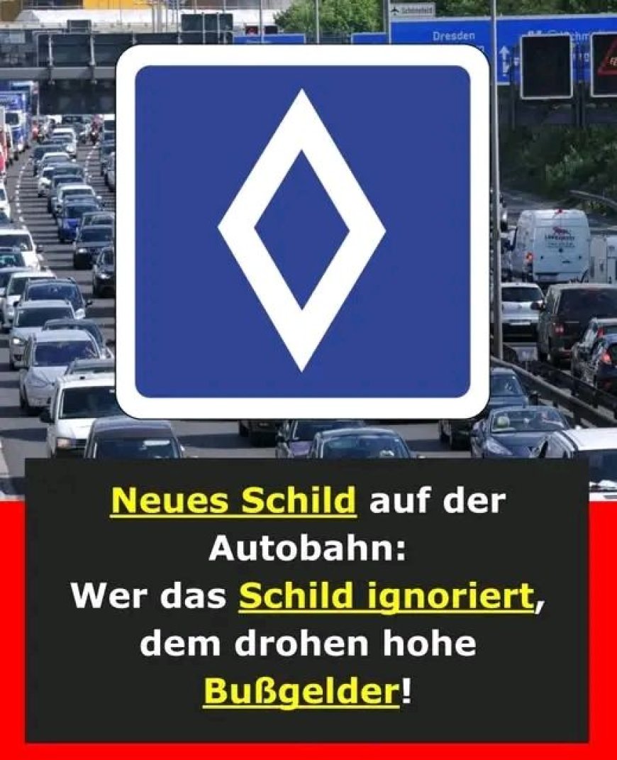 Das auffälligste Element dieser Regelung ist ein Verkehrsschild mit einer weißen Raute auf blauem Hintergrund. Dieses Symbol ist für viele Fahrer ungewohnt, hat aber eine klare Bedeutung: