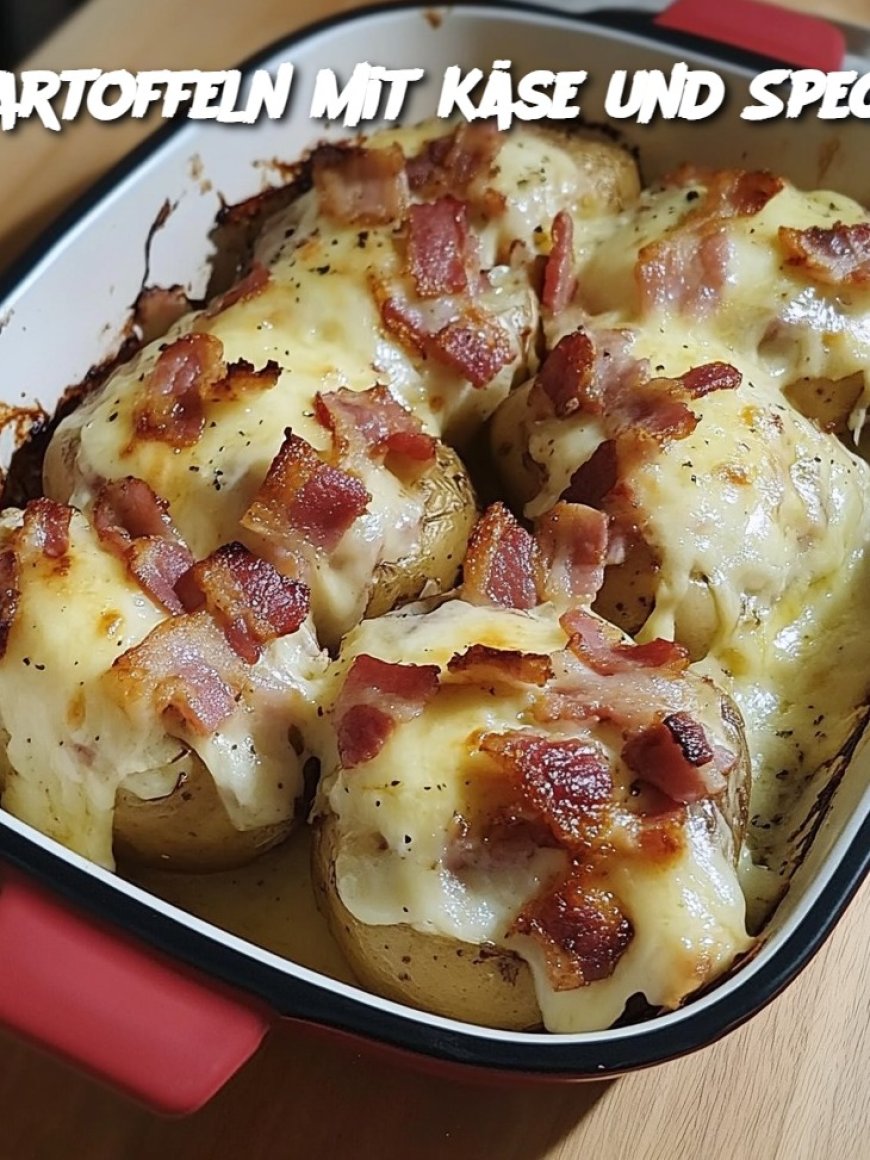 Knusprige Kartoffeln mit cremiger Käsefüllung – ein Gericht, das alle Sinne verwöhnt und in jeder Situation begeistert! Goldbrauner Cheddar, würziger Speck und zarte Kartoffeln machen dieses Rezept zu einem echten Wohlfühlklassiker. Ein unkompliziertes Gericht, das mit einfachen Zutaten und himmlischem Geschmack überzeugt. Ob als Beilage oder Hauptgericht – Kartoffeln mit Käse und Speck sind immer ein Highlight auf dem Tisch! Mit jeder Gabel ein Stück Gemütlichkeit: knusprige Schale, cremige Füllung und herzhafte Toppings. Schnell zubereitet, vielseitig variierbar und einfach unwiderstehlich – Kartoffeln neu entdeckt!