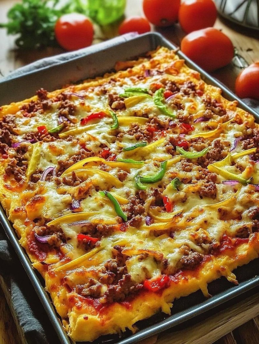 Diese herzhafte Kartoffelpizza ist perfekt, um die ganze Familie zu begeistern. Mit einer saftigen Hackfleischfüllung und buntem Gemüse wird sie zum Hit auf jedem Tisch.