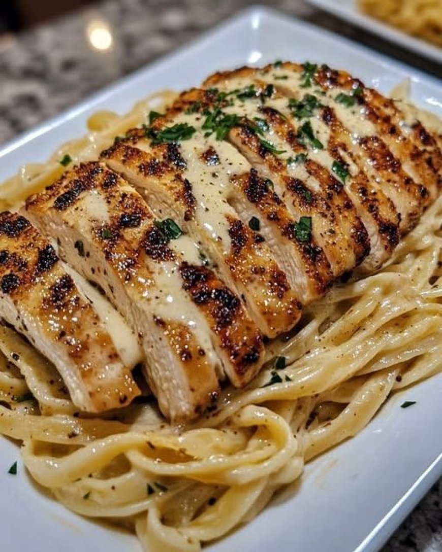 Es gibt Gerichte, die schon beim ersten Gedanken daran pures Wohlgefühl auslösen – warm, cremig, aromatisch und perfekt geeignet für einen entspannten Abend oder ein besonderes Essen ohne großen Aufwand. Knoblauchbutter-Hähnchen mit cremiger Ricotta-Alfredo-Linguine gehört genau in diese Kategorie. Die Kombination aus saftig gebratenem Hähnchen, intensivem Knoblaucharoma und einer samtigen, milden Käsesauce macht dieses Gericht zu einem echten Seelentröster.