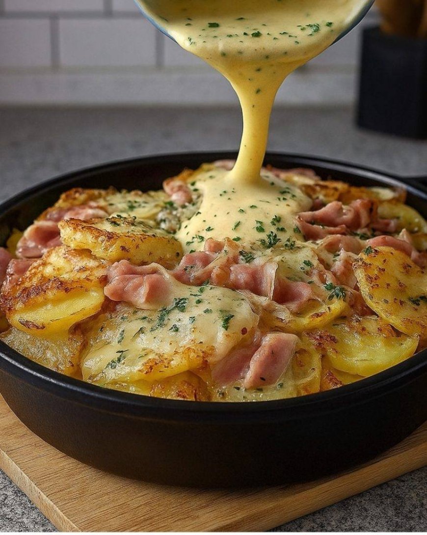 Es gibt Gerichte, die sofort ein wohliges Gefühl von Zuhause auslösen – einfach, sättigend und voller vertrauter Aromen. Genau so ein Klassiker ist dieses cremige Kartoffelgericht mit zartem Schinken, das in meiner Familie einen ganz besonderen Platz hat. Kaum steht es auf dem Tisch, bleibt garantiert kein Krümel übrig. Die Kombination aus butterzarten Kartoffelscheiben, einer samtigen Soße und herzhaftem Schinken sorgt dafür, dass jeder Bissen nach Wärme, Geborgenheit und echter Hausmannskost schmeckt.
