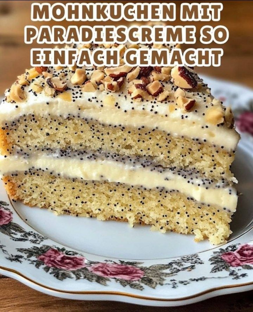 Mohnkuchen mit Paradiescreme – Einfach und Lecker