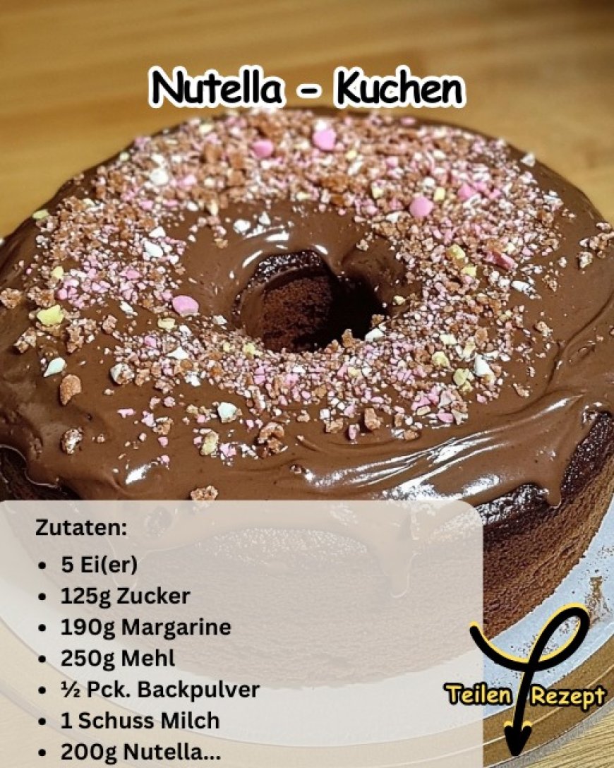 Wenn du Nutella genauso liebst wie wir, wirst du diesen Kuchen einfach unwiderstehlich finden! Der Nutella-Kuchen ist weich, feucht und unglaublich schokoladig – genau das Richtige, wenn du nach einer schnellen und einfachen, aber dennoch köstlichen Nascherei suchst. Mit nur wenigen Zutaten zauberst du einen Kuchen, der die Herzen aller Schokoladenfreunde höher schlagen lässt. Perfekt für jede Gelegenheit, sei es für einen gemütlichen Nachmittagstee oder als Highlight auf einer Feier. Lass dich von diesem einfachen Rezept verführen und genieße den vollen Nutella-Geschmack in jedem Bissen!