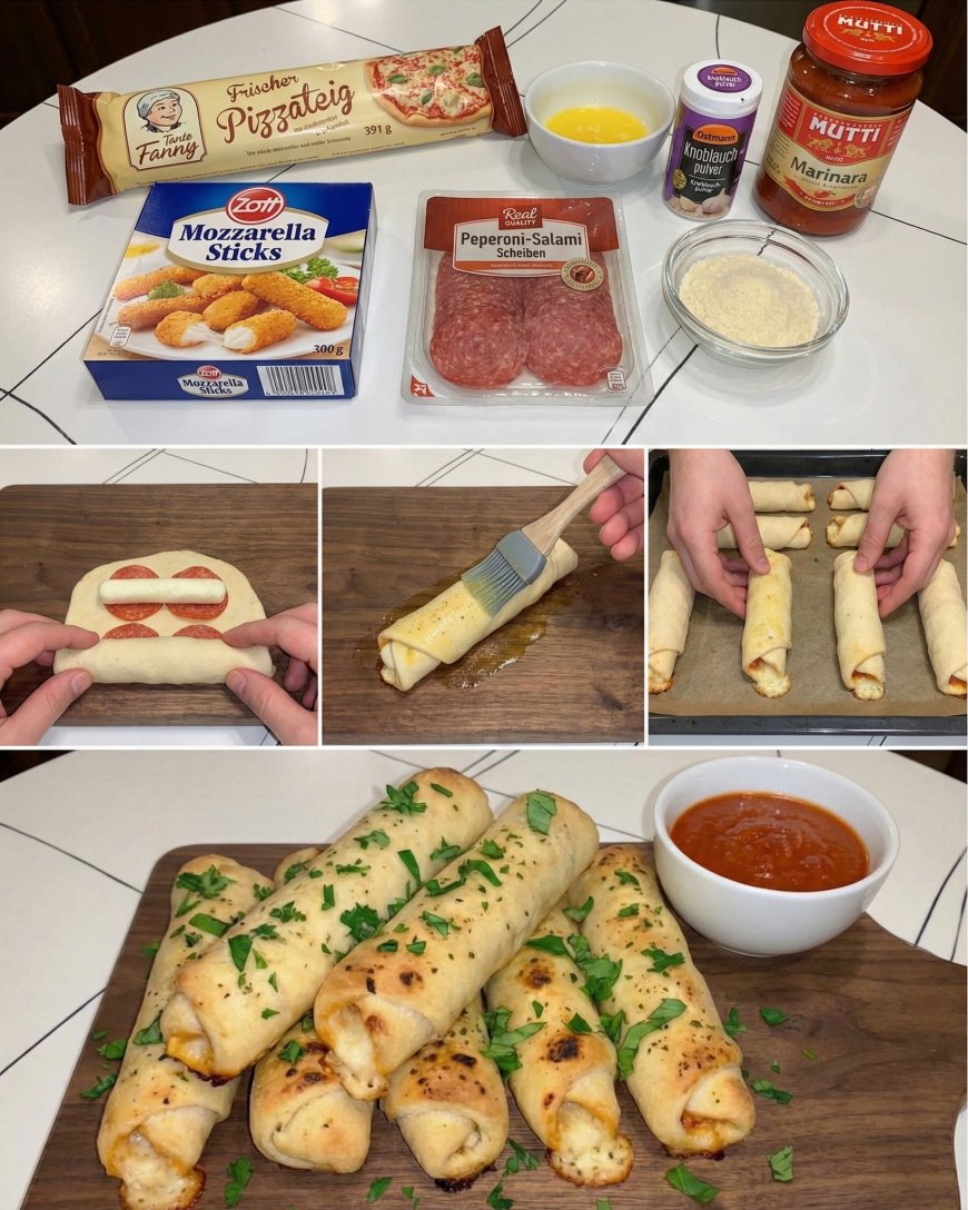 Schon beim Backen erfüllt ein intensiver Duft aus geschmolzenem Käse, würziger Peperoni und aromatischer Tomatensauce die Küche. Wenn man die Sticks anschließend aufschneidet, zieht der Käse lange Fäden – ein Anblick, der sofort Lust aufs Reinbeißen macht. Genau diese Kombination aus cremiger Füllung und fluffigem Teig sorgt dafür, dass sie bei Groß und Klein gleichermaßen beliebt sind.