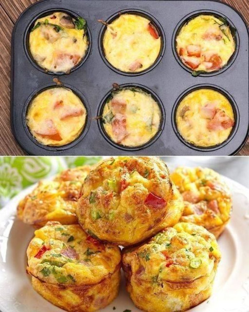 Die Muffinform in den vorgeheizten Ofen geben und ca. 20–25 Minuten backen, bis die Eier gestockt und leicht goldbraun sind.