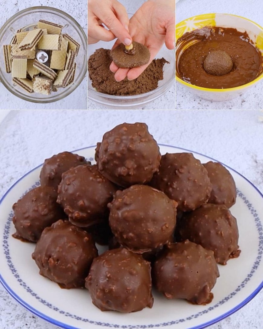 Die Kombination aus knusprigen Haselnusswaffeln, cremiger Haselnusscreme, knackigen Haselnüssen und geschmolzener Schokolade macht diese Leckereien unwiderstehlich. Der Kern jeder Kugel ist eine kleine Überraschung, die beim Hineinbeißen pure Freude bereitet. Und das Beste? Sie brauchen keinen Backofen, nur ein wenig Geduld, während die Kugeln im Kühlschrank ruhen.