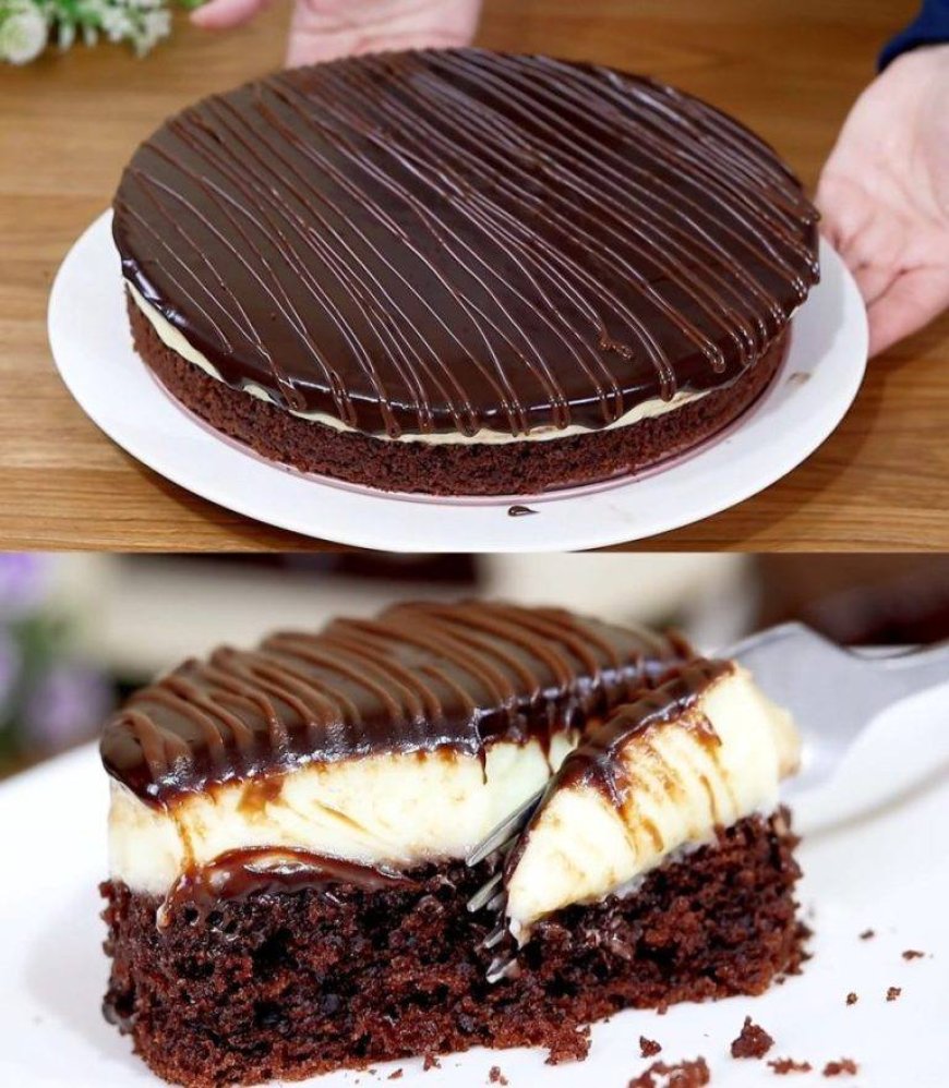 Diese Torte verbindet drei perfekte Komponenten zu einem außergewöhnlich harmonischen Dessert: einen saftig-weichen Schokoladenboden, eine leichte, cremige Vanillefüllung und eine glänzende, zartschmelzende Schokoladenglasur. Die Schichten verschmelzen zu einem Dessert, das sowohl optisch beeindruckt als auch geschmacklich höchsten Ansprüchen gerecht wird. Die Kombination aus intensivem Kakao, feiner Creme und elegantem Schokoladenguss macht diese Torte ideal für besondere Anlässe, Familienfeiern oder den luxuriösen Genuss im Alltag.