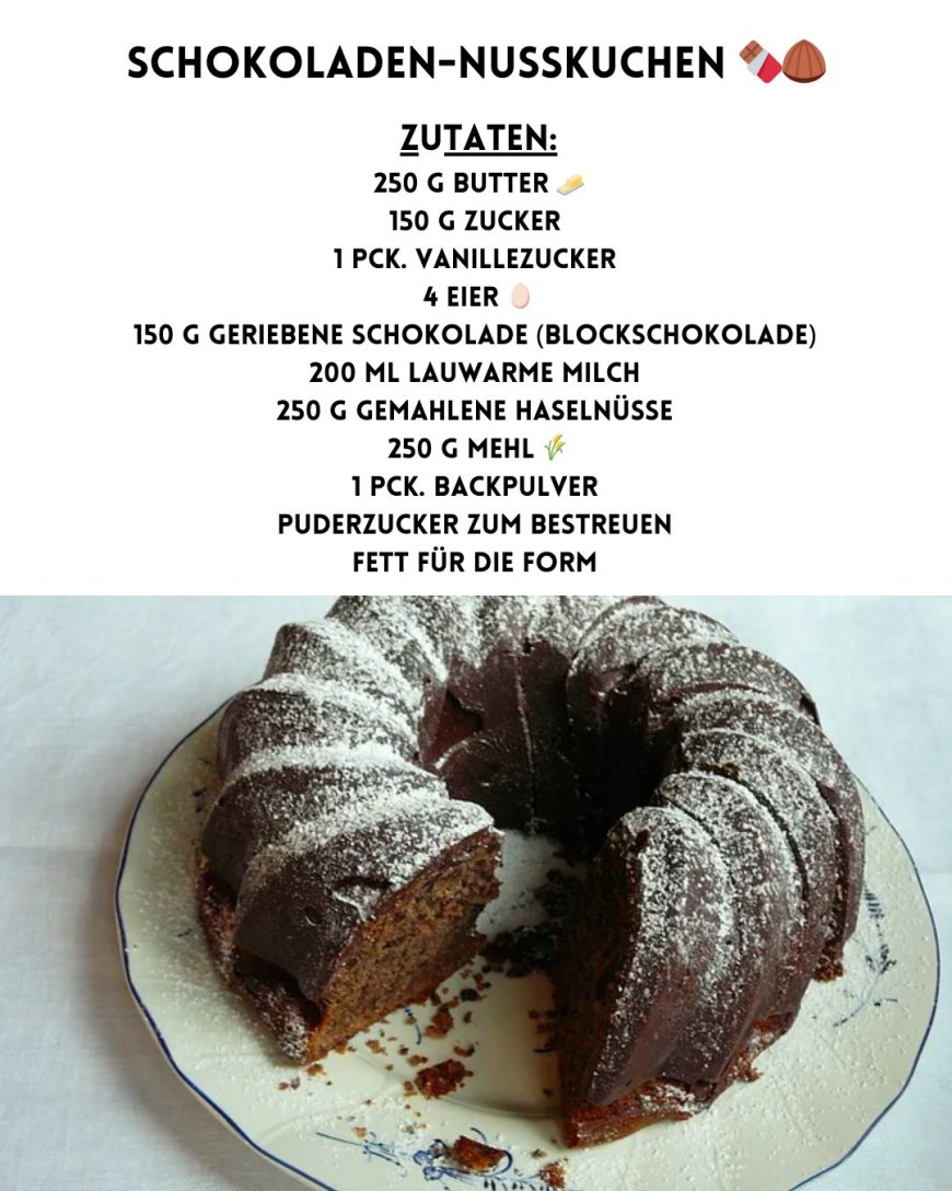 Schokoladenliebhaber aufgepasst! Unser Schokoladen-Nusskuchen vereint die zarte Süße von Schokolade mit dem nussigen Aroma von Haselnüssen zu einem unwiderstehlich saftigen Kuchen. Perfekt für gemütliche Nachmittage, besondere Anlässe oder einfach als kleine Verwöhnung zwischendurch. Dank der einfachen Zubereitung gelingt er garantiert und sorgt für Begeisterung bei Familie und Freunden. Lass dich von diesem klassischen Rezept inspirieren und genieße einen Kuchen, der auf der Zunge zergeht. Jetzt Backschürze anziehen und loslegen – der Schokoladen-Nusskuchen wartet auf dich