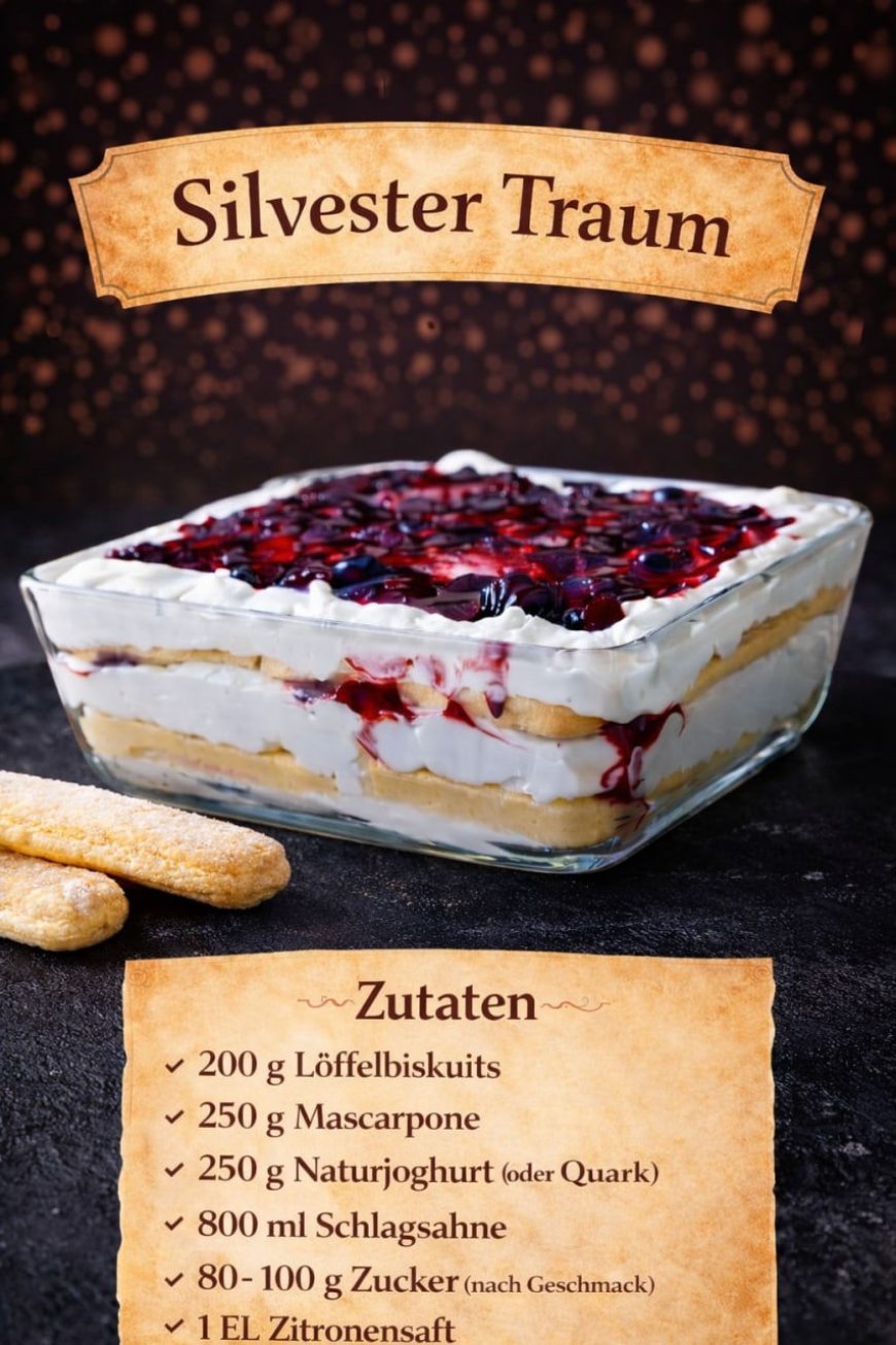 Hier ist eine ausführlichere und festliche Einleitung für dein Rezept, die perfekt zu dem besonderen Anlass passt, den der Name „Silvester Traum“ verspricht: ✨ Ein kulinarisches Highlight für den Jahreswechsel: Der Silvester Traum Wenn sich das Jahr dem Ende neigt und man mit Freunden oder der Familie zusammenkommt, darf ein krönender Abschluss nicht fehlen. Der „Silvester Traum“ ist weit mehr als nur ein einfaches Schichtdessert – er ist die perfekte Kombination aus luftiger Leichtigkeit, cremiger Fülle und der fruchtigen Frische von Beeren.