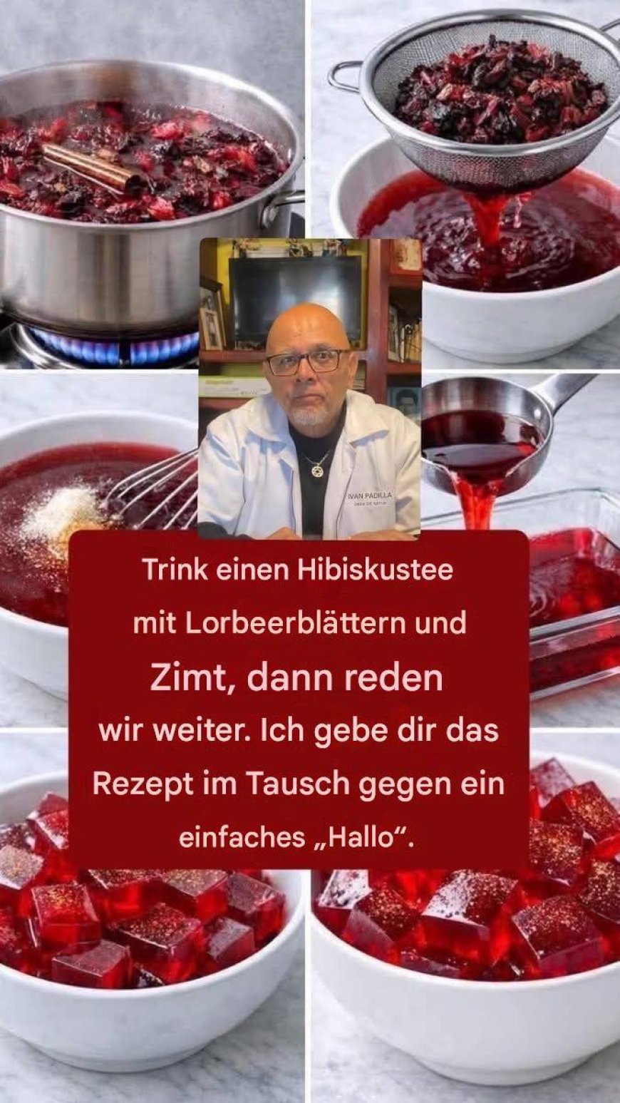Trink einen Hibiskustee mit Lorbeerblättern und Zimt, dann reden wir weiter. Stellen Sie sich vor, Sie trinken zuerst einen heißen, duftenden Hibiskustee mit Lorbeerblättern und Zimt – ein Getränk, das Ihre Sinne weckt, den Körper sanft wärmt und die Seele beruhigt. Der intensive rote Farbton, die fruchtig-säuerliche Note des Hibiskus und die warmen, aromatischen Nuancen von Zimt und Lorbeer schaffen bereits eine einzigartige Vorfreude.