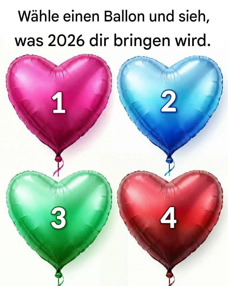Auf den ersten Blick wirkt das Bild einfach und fröhlich: vier herzförmige Ballons in verschiedenen Farben, jeder mit einer Zahl von eins bis vier gekennzeichnet. Darüber prangt die markante Einladung: „Wähle einen Ballon und finde heraus, was 2026 dir bringt.“ Es wirkt unbeschwert, fast wie ein Spiel – doch hinter dieser Einfachheit verbirgt sich etwas Tieferes darüber, wie Menschen über die Zukunft denken.