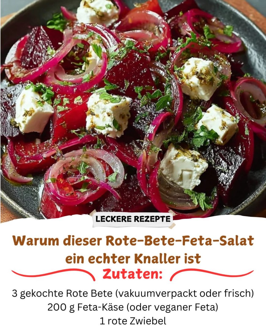 Dieser Rote-Bete-Feta-Salat überzeugt durch seine intensive Farbe, seinen ausgewogenen Geschmack und seine einfache, aber hochwertige Zubereitung. Die erdige Süße der Rote Bete harmoniert perfekt mit der salzigen Frische des Feta-Käses, während rote Zwiebeln und Kräuter für eine angenehme Schärfe und Frische sorgen. Abgerundet wird der Salat durch ein fein abgestimmtes Dressing, das die Aromen miteinander verbindet, ohne sie zu überdecken.