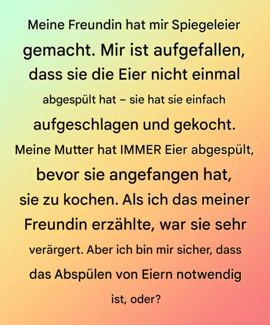 Später, als der erste Schmerz nachgelassen hatte, entschuldigte er sich. Er erklärte, dass das Abspülen der Eier keine feste Regel sei – es sei einfach eine vertraute Gewohnheit, eine kleine Angewohnheit, die sich in sein Gedächtnis eingebrannt hatte. Er hatte sie nicht kritisieren wollen. Er hatte keinen Vergleich anstellen wollen.