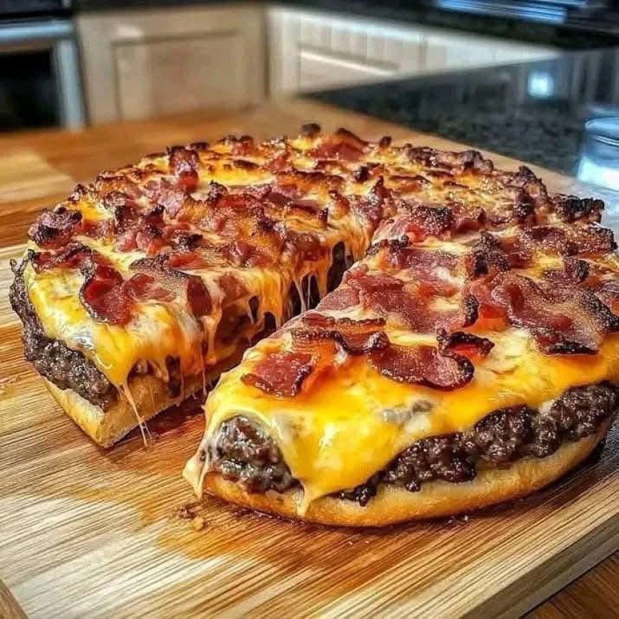 Lust auf etwas Außergewöhnliches? Diese Cheeseburger-Pizza mit Bacon vereint das Beste aus zwei Klassikern: den herzhaften Geschmack eines saftigen Burgers mit dem knusprigen Boden und dem geschmolzenen Käse einer Pizza. Perfekt für alle, die sich nicht zwischen Burger und Pizza entscheiden können!